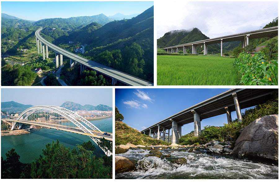 公司先后施工的橋梁工程有馬鞍山長江公路大橋、鷹瑞高速資溪互通大橋、岳潛高速徐沖大橋、泗許跨亳阜互通立交橋、合寧擴(kuò)建隴西互通立交、濟(jì)祁高速渦河特大橋等。
