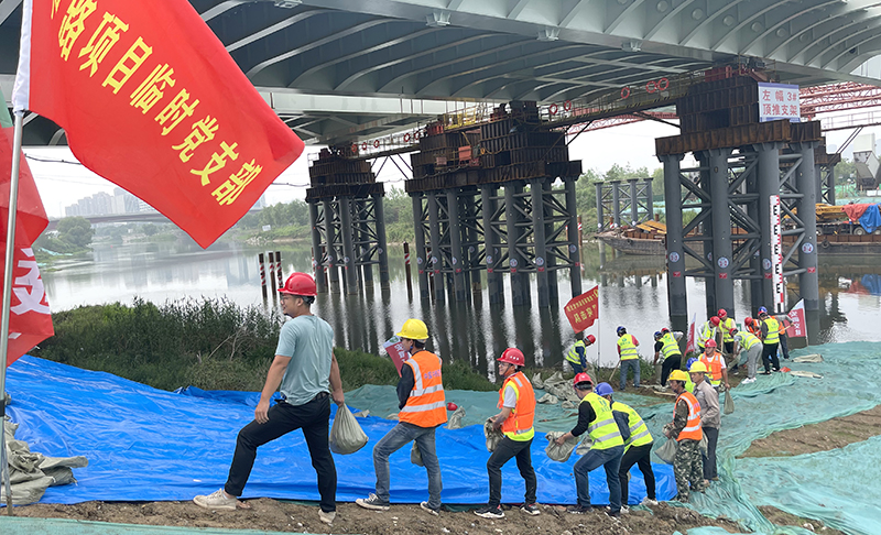 本次演練背景為連續(xù)強(qiáng)降雨天氣,南淝河水位持續(xù)上漲即將突破警戒線,隨時(shí)會(huì)洪水破堤淹沒(méi)施工便道圍堰堤壩、危害周圍居民財(cái)產(chǎn)及生命安全……險(xiǎn)情告急!