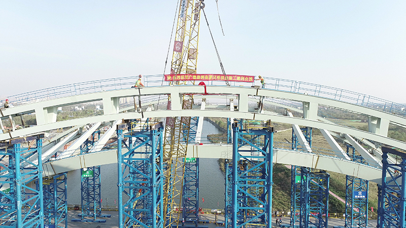 11月11日,隨著最后一段拱肋緩緩吊裝至合龍位置,安徽交建承建的廣德路項(xiàng)目跨南淝河大橋拱肋邊拱順利合龍。至此主橋三拱吊裝施工全部完成,同時(shí)為廣德路跨南淝河大橋通車(chē)打下堅(jiān)實(shí)基礎(chǔ)。