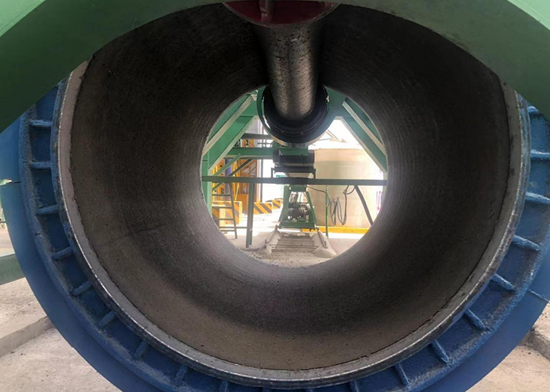本項目共預(yù)制圓管涵4188節(jié),涵身混凝土設(shè)計標(biāo)號C30,采用先預(yù)制后安裝的施工方法,所預(yù)制的Φ1.5m涵管的管壁厚度為16cm,標(biāo)準(zhǔn)管節(jié)長2m,輔助管節(jié)長0.5m。施工采用干硬性混凝土,使用懸輥機輥壓離心制管法預(yù)制管節(jié)。