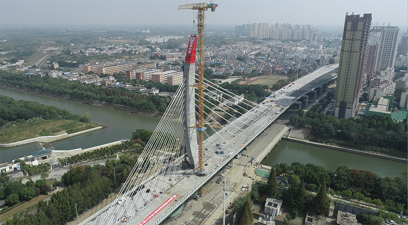 國慶獻(xiàn)禮:包公大道跨店埠河斜拉橋主塔順利封頂