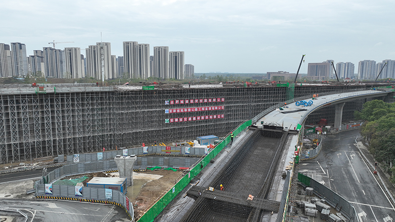 宿松路(南二環(huán)~深圳路)快速化改造工程7標(biāo)段全長4.35公里,其中高架橋段北起紫石路,上跨云谷路、始信路、云海路、珠江路,經(jīng)龍灣路連接地面系統(tǒng),長2.25公里。項目自7月21日封閉施工開始至主線箱梁混凝土澆筑結(jié)束,累計綁扎鋼材2.2萬噸,澆筑混凝土12萬立方米,完成產(chǎn)值近4.8億元。