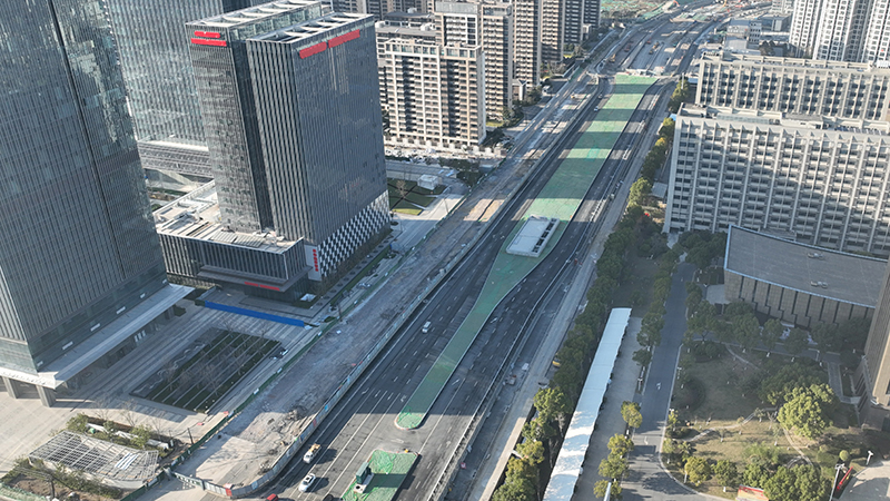 宿松路下穿地道全長1251.3m,其中北側(cè)敞口段136.3m,暗埋段長975m;南側(cè)敞口段長140m,共42個節(jié)段。與繁華大道十字相交段的雙層下穿疊合段自3月14日開挖至今,歷時283天,實(shí)現(xiàn)宿松路下穿地道結(jié)構(gòu)貫通,比計(jì)劃工期提前160天!