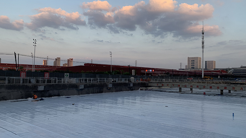 宿松路快速化改造工程地處城市建成區(qū),周邊環(huán)境復(fù)雜,施工面臨地下管網(wǎng)縱橫交錯、基坑開挖深度大、結(jié)構(gòu)防裂、防水要求高等難題。面對復(fù)雜而苛刻的條件,安徽交建項(xiàng)目部實(shí)現(xiàn)了多項(xiàng)行業(yè)“首創(chuàng)”:針對市政干作業(yè)基坑圍護(hù)樁垂直度控制不佳,我部采購2臺RSM-HGT(D)型超聲波成孔質(zhì)量檢測儀對樁基垂直進(jìn)行檢測、及時糾偏;施工過程中使用全站儀對旋挖鉆機(jī)桅桿垂直度進(jìn)行檢查、糾偏;為有效控制地道側(cè)墻混凝土裂縫,選擇摻加ART-MPC無機(jī)納米抗裂密實(shí)劑,提高混凝土抗裂性。養(yǎng)護(hù)采用水能量節(jié)水保濕養(yǎng)護(hù)膜,將液態(tài)水轉(zhuǎn)化為固態(tài)水,通過毛細(xì)管作用,源源不斷的向養(yǎng)護(hù)面滲透,同時吸收砼水化熱過程中蒸發(fā)水,在一個養(yǎng)護(hù)周期內(nèi)保證養(yǎng)護(hù)體表面保持濕潤,相對濕度≥90%;為避免變形縫滲水情況,施工過程中增設(shè)一道中埋式止水帶。同時針對止水帶安裝及焊接等薄弱環(huán)節(jié)加強(qiáng)控制,安排固定人員培訓(xùn),舉辦焊接比賽,提升焊接技術(shù)。