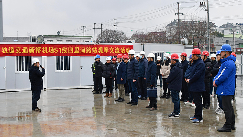 下午15:00,參會人員40余人到達(dá)觀摩現(xiàn)場,軌道質(zhì)監(jiān)站總工陳曉明做活動啟動講話。參會人員現(xiàn)場參觀了四里河路站場地布置、揚(yáng)塵防治、安全文明施工管理等內(nèi)容,聽取了項(xiàng)目經(jīng)理王飛相關(guān)經(jīng)驗(yàn)介紹,并進(jìn)行交流。