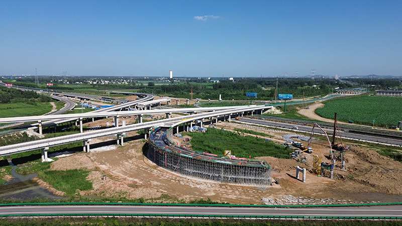 我標(biāo)段承建的固蚌高速洪集樞紐二期工程,為落地式組合樞紐,向西距蚌埠北互通4.3公里,樞紐互通向南連接國道G329,設(shè)匝道收費(fèi)站。項(xiàng)目建成后將實(shí)現(xiàn)與寧洛高速公路之間的交通轉(zhuǎn)換及國道G329交通直接上下高速公路的功能,便捷了蚌埠市從洪集出入口上下寧洛高速,緩解了該市東北部交通壓力。