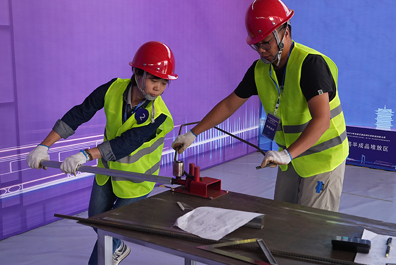 賽場(chǎng)上,王旭東、周蓉兩位選手沉著迎戰(zhàn)、不畏強(qiáng)手,信心十足地快速準(zhǔn)確切割鋼筋,沉著地檢測(cè)模擬構(gòu)件的缺陷,全神貫注地使用儀器進(jìn)行施工放樣,每個(gè)項(xiàng)目每個(gè)環(huán)節(jié)均都能從容面對(duì),展示了交建人扎實(shí)的技能功底和良好的心理素質(zhì)。