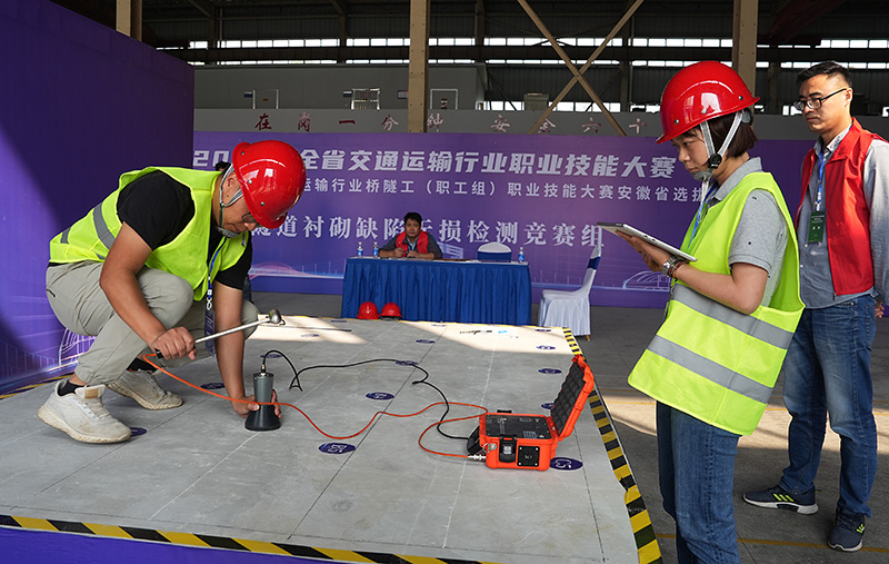 據(jù)悉,此次大賽由安徽省交通運(yùn)輸廳、安徽省人力資源和社會(huì)保障廳共同舉辦。本次大賽共設(shè)置城市軌道交通行車調(diào)度員、新能源汽車維修工、橋隧工、電動(dòng)港口裝卸機(jī)械司機(jī)4個(gè)職業(yè)賽項(xiàng)。比賽采取理論知識(shí)競(jìng)賽和操作技能競(jìng)賽相結(jié)合的方式,涵蓋了鋼筋骨架加工、隧道襯砌缺陷無(wú)損檢測(cè)、施工放樣3個(gè)競(jìng)賽項(xiàng)目。