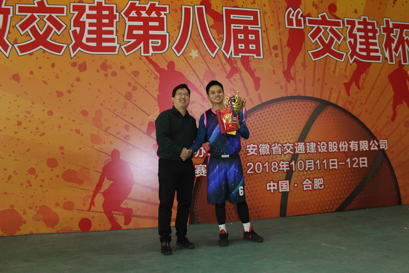 在閉幕式上,安徽交建領(lǐng)導(dǎo)吳學(xué)懿、陳明洋、吳小輝、柳欣分別為冠軍、亞軍、季軍和MVP頒發(fā)獎(jiǎng)杯并表示祝賀。最后,吳總宣布本屆籃球比賽圓滿落幕,期待明年再會(huì)!