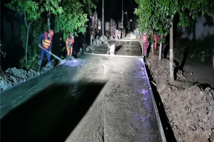 凌晨時分,城市的萬千燈火漸弱,界首農(nóng)村公路項目工地上卻燈火通明,挖掘機、灰土拌合機、混凝土拌合站轟鳴聲此起彼伏,工程運輸車來回穿梭,一片忙碌的景象。
