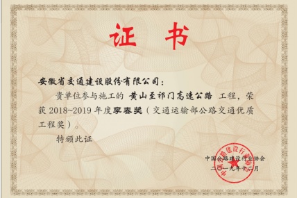 近日,從中國公路建設(shè)行業(yè)協(xié)會傳來喜訊,安徽省交通建設(shè)股份有限公司黃山至祁門高速、揚州至績溪高速公路寧國至績溪段項目雙雙榮獲2018-2019年度李春獎。