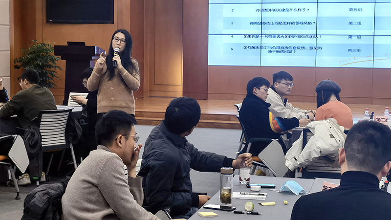 在共創(chuàng)會環(huán)節(jié),大家就“如何快速融入公司”、“你希望的領(lǐng)導(dǎo)風(fēng)格”、“假如你是管理者,如何帶好團隊”等問題各抒己見并展開激烈討論。這一環(huán)節(jié)旨在促進新員工的成長和融入,讓大家深刻體會團隊、責(zé)任、執(zhí)行的意義。