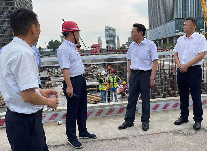 在宿松路下穿繁華大道施工現場,虞愛華聽取了項目概況、施工進度等方面的介紹,對2標段能夠在188天完成花園大道跨線橋建成通車給予了高度認可。虞愛華對大建設工作者們在炎熱天氣下的辛勤付出表示真摯的慰問和感謝,并叮囑一線建設工人要注意勞逸結合和防暑降溫。他強調,在統(tǒng)籌發(fā)展的同時,要高度重視安全管理,既要守住“看不見”的防疫安全,也要守住“看得見”的生產安全,堅決防范各類重大事故的發(fā)生。
