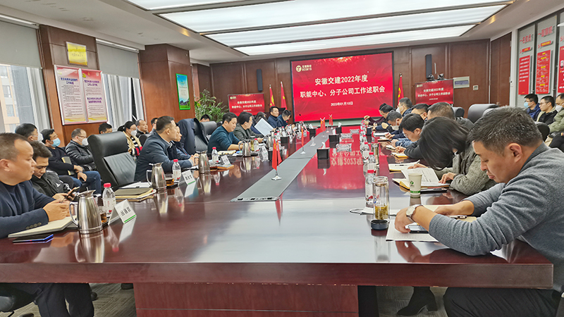 1月10日下午,安徽省交通建設(shè)股份有限公司2022年度職能中心和分子公司工作述職大會(huì)在總部20樓會(huì)議室召開,公司經(jīng)營班子、高管及各職能中心、分子公司負(fù)責(zé)人等參加了會(huì)議。
